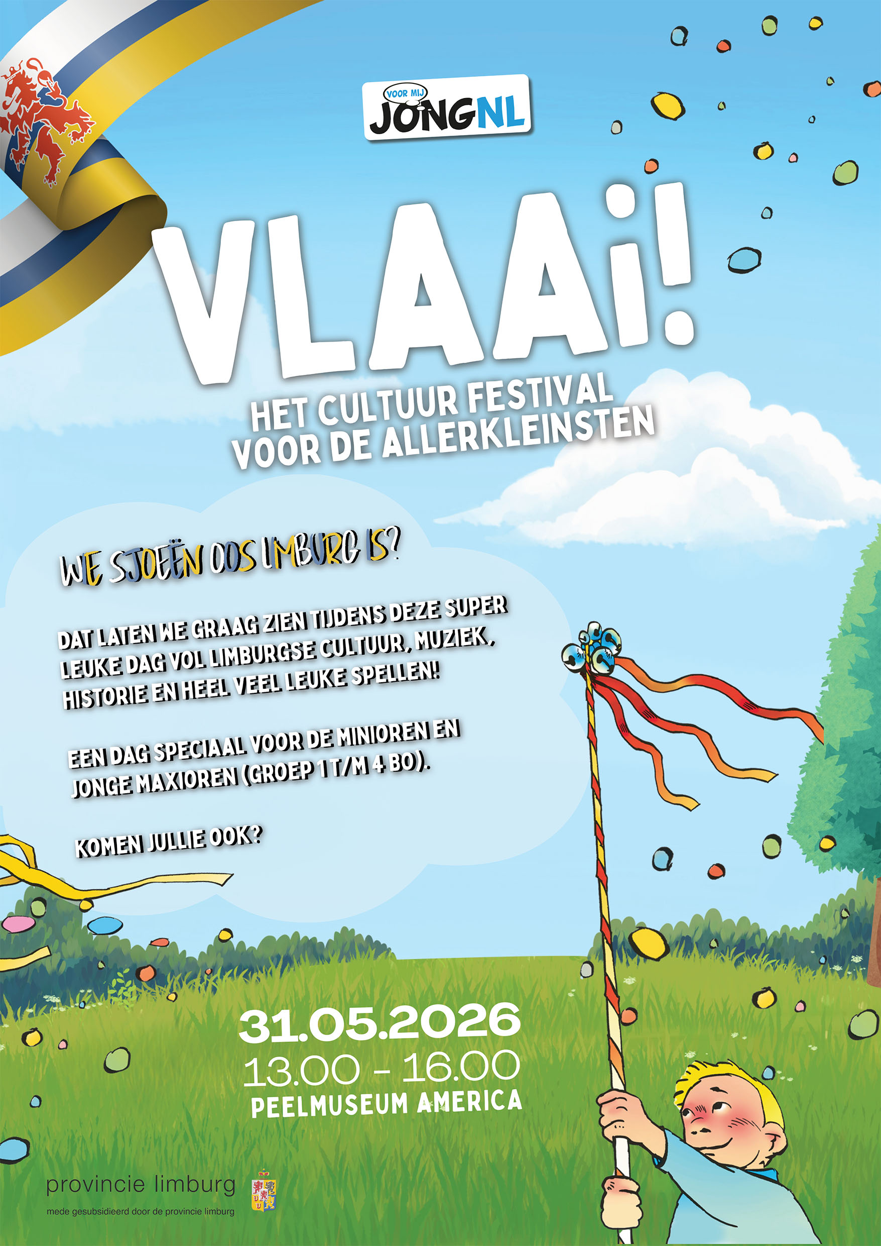 Wie sjoeën oos Limburg is? Dat laten we graag zien tijdens dit vrolijke en leerzame cultuurfestival voor kinderen uit BO groep 1 t/m 4. Op zondag 31 mei 2026 openen we de deuren van het Peelmuseum in America voor een dag vol Limburgse cultuur, muziek, historie én heel veel leuke spellen, met onder andere: